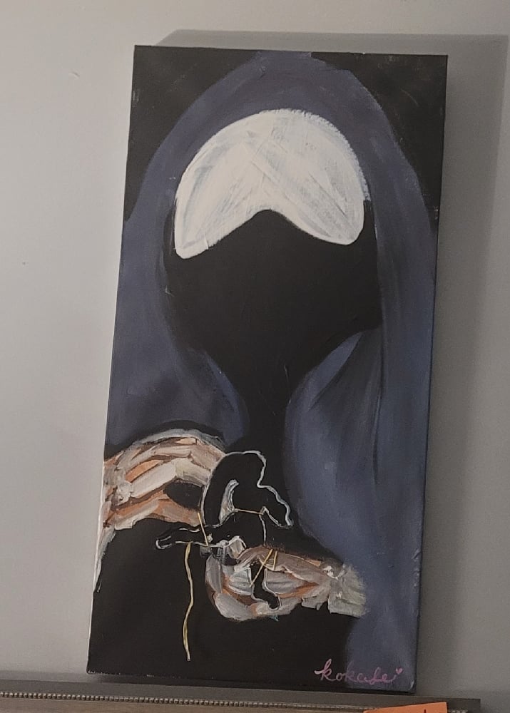 This piece represents an overwhelming darkness controlling you- be that mental disorders, life events, loss or death; and breaking free of the ties to the darkness.